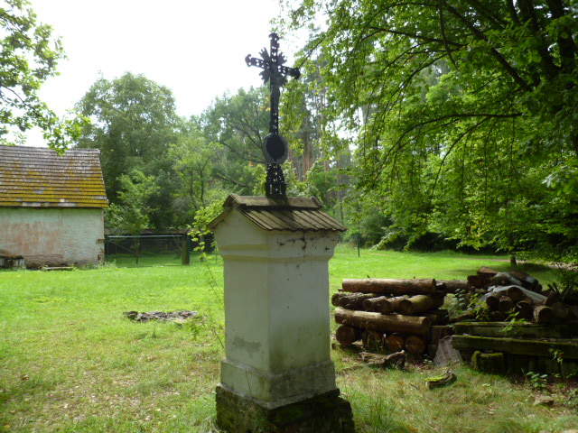 | Křížek stojí před samotou U Chrtů, je připomínkou vraždy mlynáře. Dříve zde byl i obraz znázorňující tuto tragédii. | |